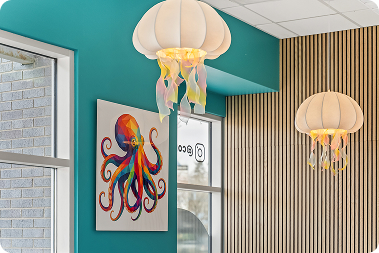 Step into a one-of-a-kind space where the energy of a modern café meets the calm of the ocean. Our custom coral tanks are home to a variety of marine life — from clownfish and lionfish to rays and tangs — all ethically sourced and tank-bred.